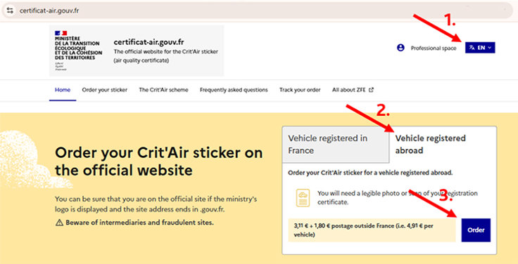 Beställa miljödekal på certificat-air.gouv.fr