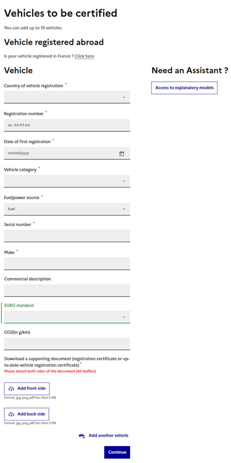 - Counry of vehicle registration