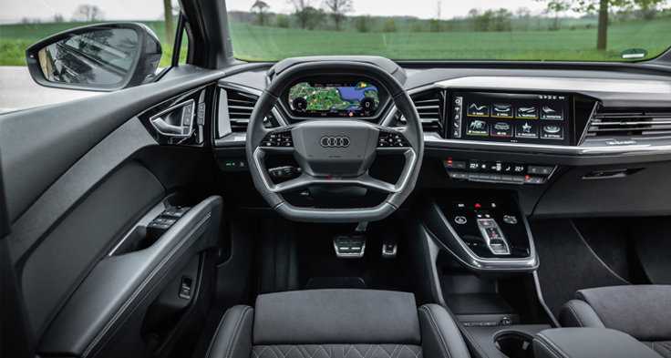 Men Q4 Sportback e-tron är inte bara en fråga om design och utrymmen. Den sluttande bakrutan ger en mer droppformad kaross, som lättare glider genom luften. Därför har Sporback-versionen av Q4 e-tron lägre förbrukning, framför allt i motorvägsfart, och nästan en mil längre räckvidd i WLTP-testcykeln än vanliga Q4 e-tron. Något som är uppskattat när vi tar den på en motorvägstur.